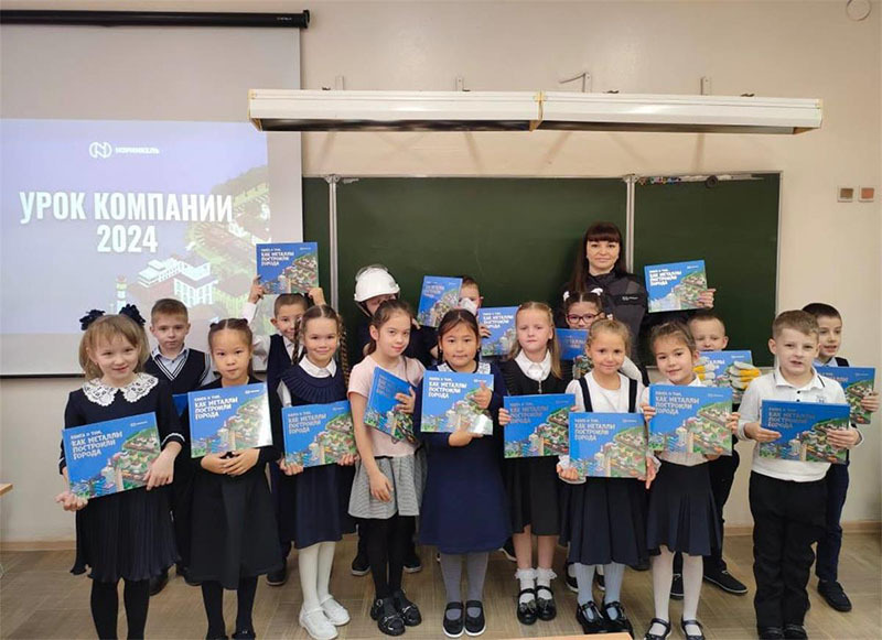 Another hit is the "Company Lesson" for first-graders—a fun, unique classroom session for kids just starting school. Nornickel employees share the company's vital role in Norilsk life in simple, relatable terms. Highlights include trying on personal protective equipment (PPE) like safety vests, goggles, masks, gloves, and helmets. Children eagerly don their "new outfits," pose for classmates, and snap photos. With over a decade of success, the program now features Professor Nikhrom's Lessons animated screenings.